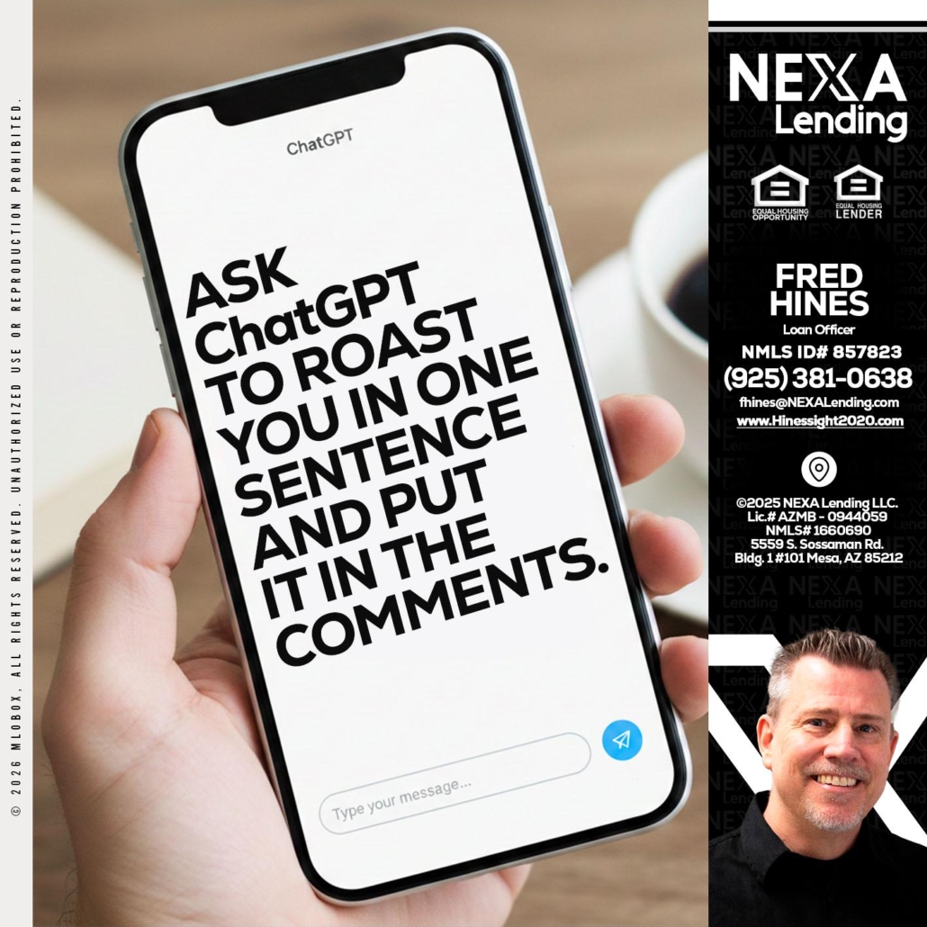 ask chatgpt - Fred Hines -Loan OfficerHi, my name is Fred Hines. I’m a Loan Officer with NEXA Lending LLC., offering personalized mortgage solutions, fast customized quotes, great rates and service with integrity.