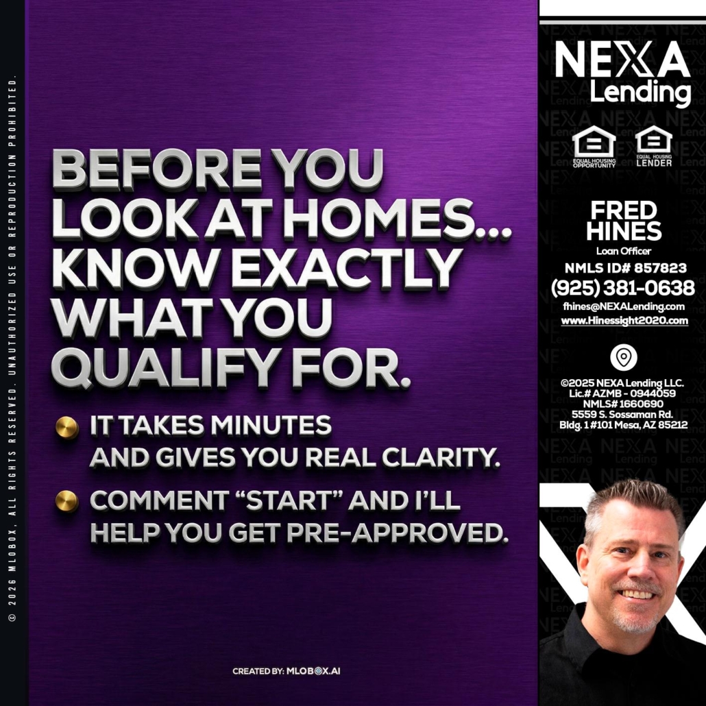 Hi, my name is Fred Hines. I’m a Loan Officer with NEXA Lending LLC., offering personalized mortgage solutions, fast customized quotes, great rates and service with integrity.