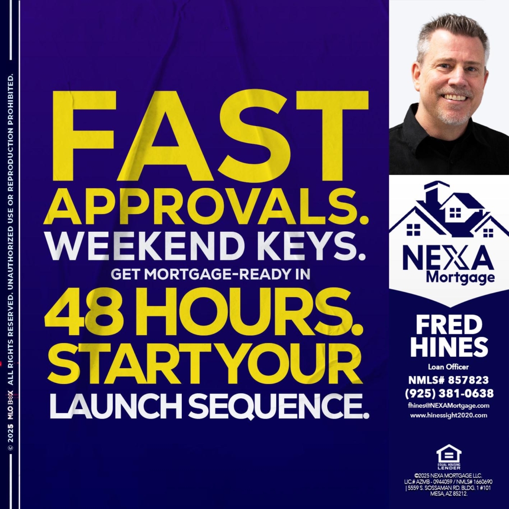 Hi, my name is Fred Hines. I’m a Loan Officer with NEXA Mortgage LLC., offering personalized mortgage solutions, fast customized quotes, great rates and service with integrity.