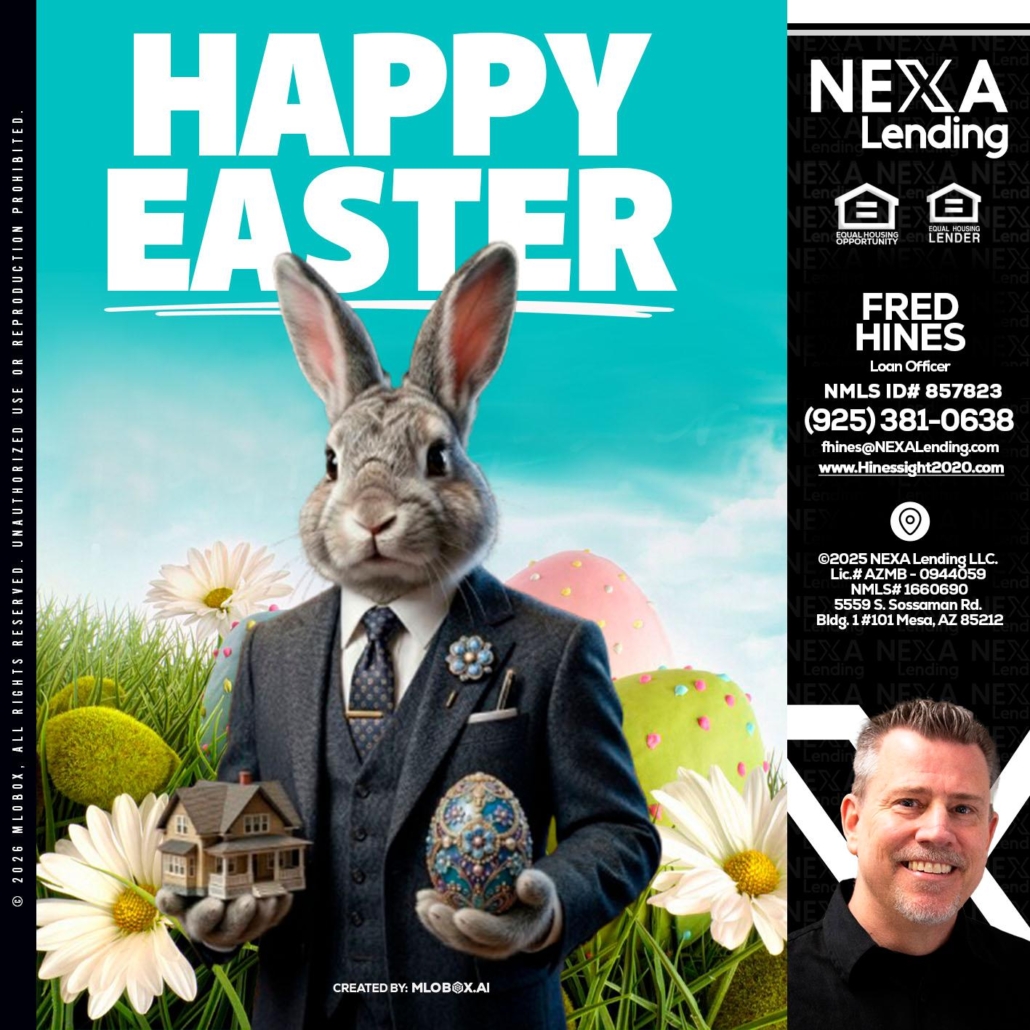 HAPPY EASTER - Fred Hines -Loan OfficerHi, my name is Fred Hines. I’m a Loan Officer with NEXA Lending LLC., offering personalized mortgage solutions, fast customized quotes, great rates and service with integrity.