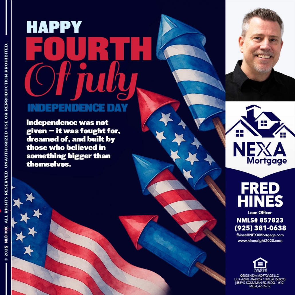 happy fourth - Fred Hines -Loan OfficerHi, my name is Fred Hines. I’m a Loan Officer with NEXA Mortgage LLC., offering personalized mortgage solutions, fast customized quotes, great rates and service with integrity.