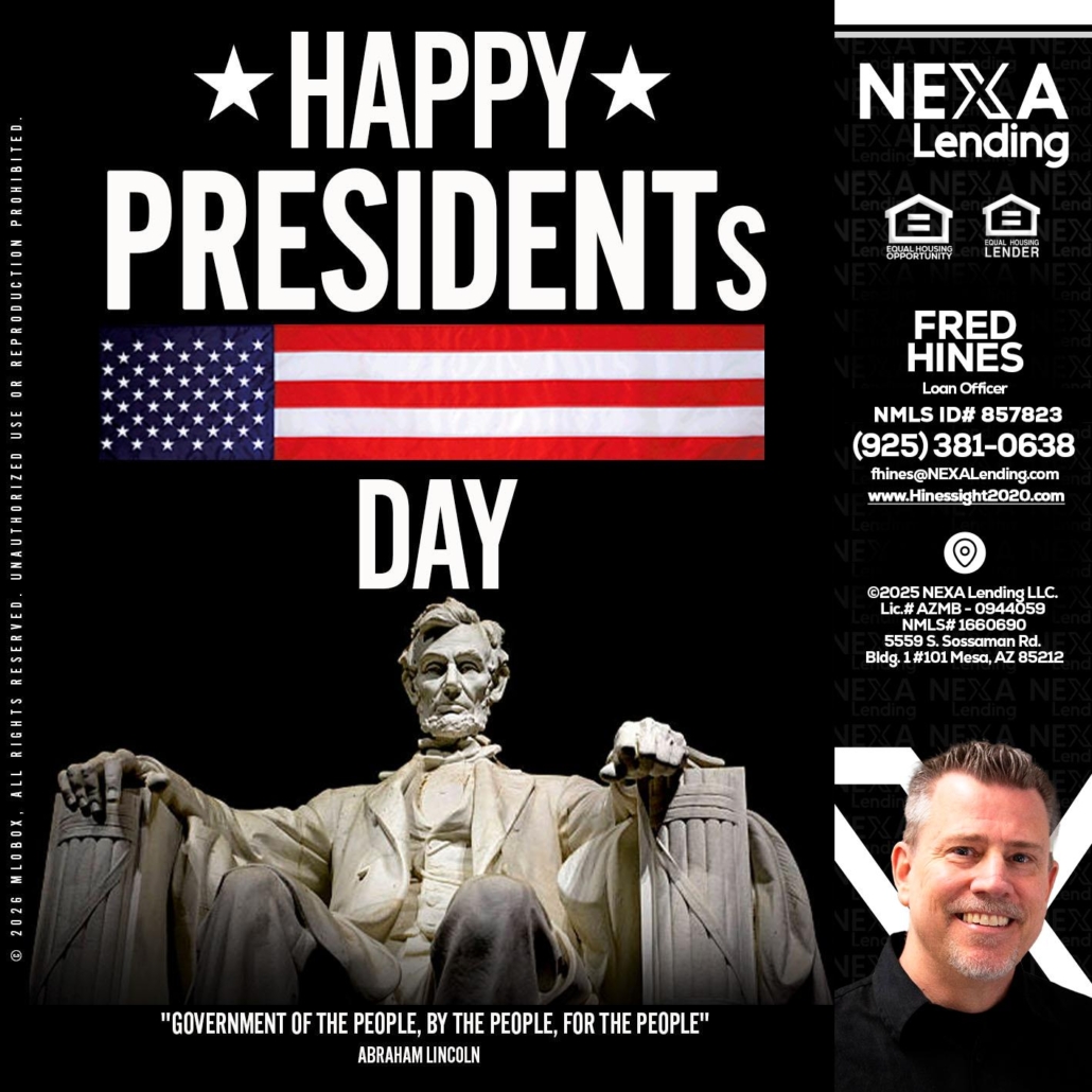 happy presidents day - Fred Hines -Loan OfficerHi, my name is Fred Hines. I’m a Loan Officer with NEXA Lending LLC., offering personalized mortgage solutions, fast customized quotes, great rates and service with integrity.