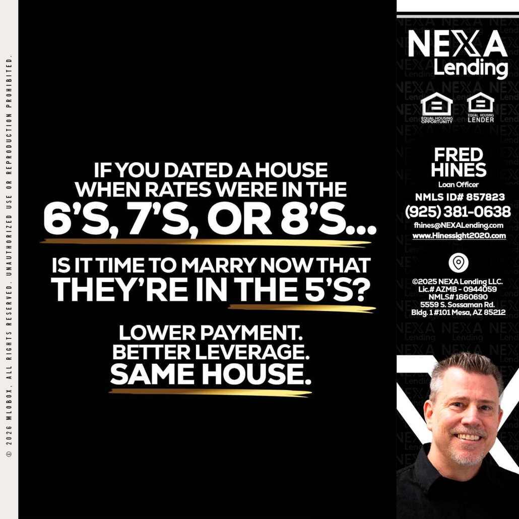 Hi, my name is Fred Hines. I’m a Loan Officer with NEXA Lending LLC., offering personalized mortgage solutions, fast customized quotes, great rates and service with integrity.