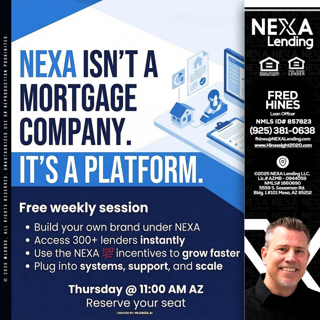 NEXA ISNT - Fred Hines -Loan OfficerHi, my name is Fred Hines. I’m a Loan Officer with NEXA Lending LLC., offering personalized mortgage solutions, fast customized quotes, great rates and service with integrity.