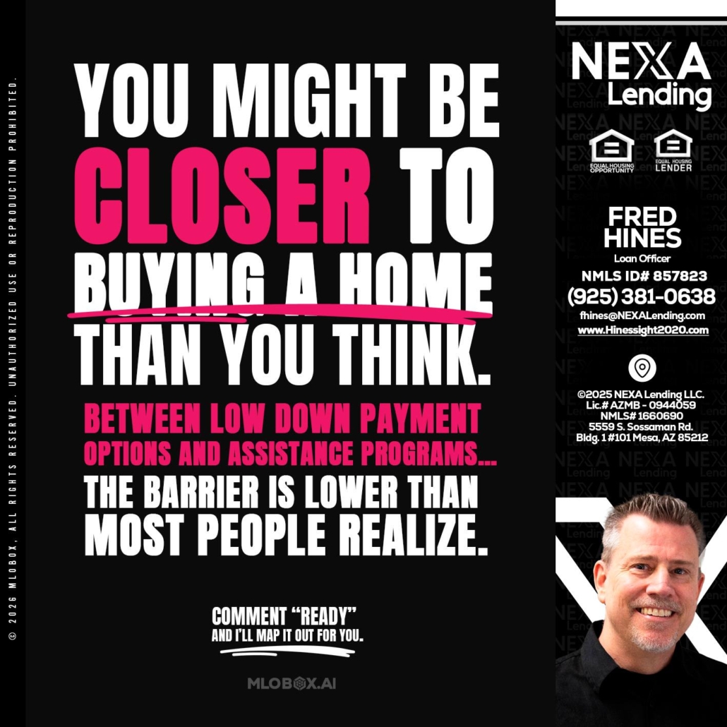 Hi, my name is Fred Hines. I’m a Loan Officer with NEXA Lending LLC., offering personalized mortgage solutions, fast customized quotes, great rates and service with integrity.